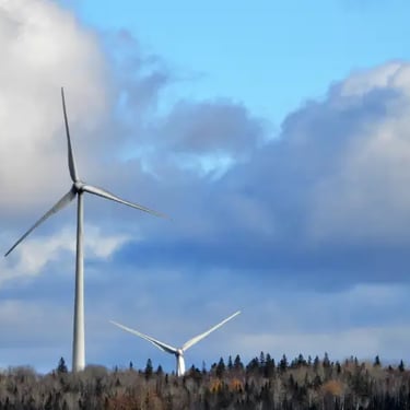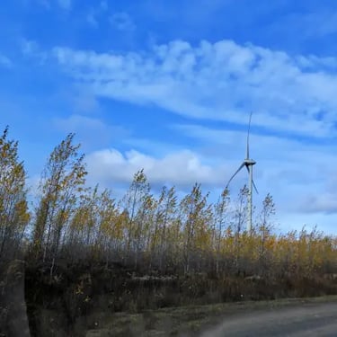 Les éoliennes qui entourent Padoue, située dans la région de la Mitis au Bas-Saint-Laurent, illustrent puissamment l'engagement en faveur des énergies durables et renouvelables.