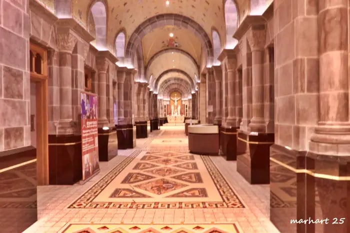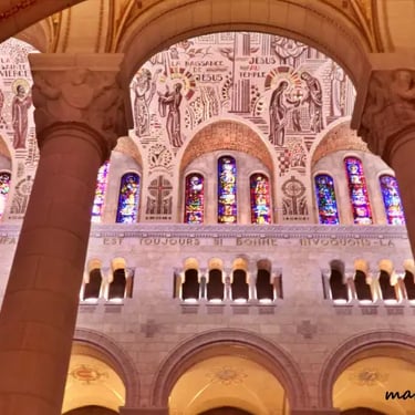 Les Mosaïques : Le plafond de la nef est recouvert de mosaïques complexes qui racontent la vie de sainte Anne. La réflexion de la lumière sur ces tesselles crée une atmosphère dorée unique.